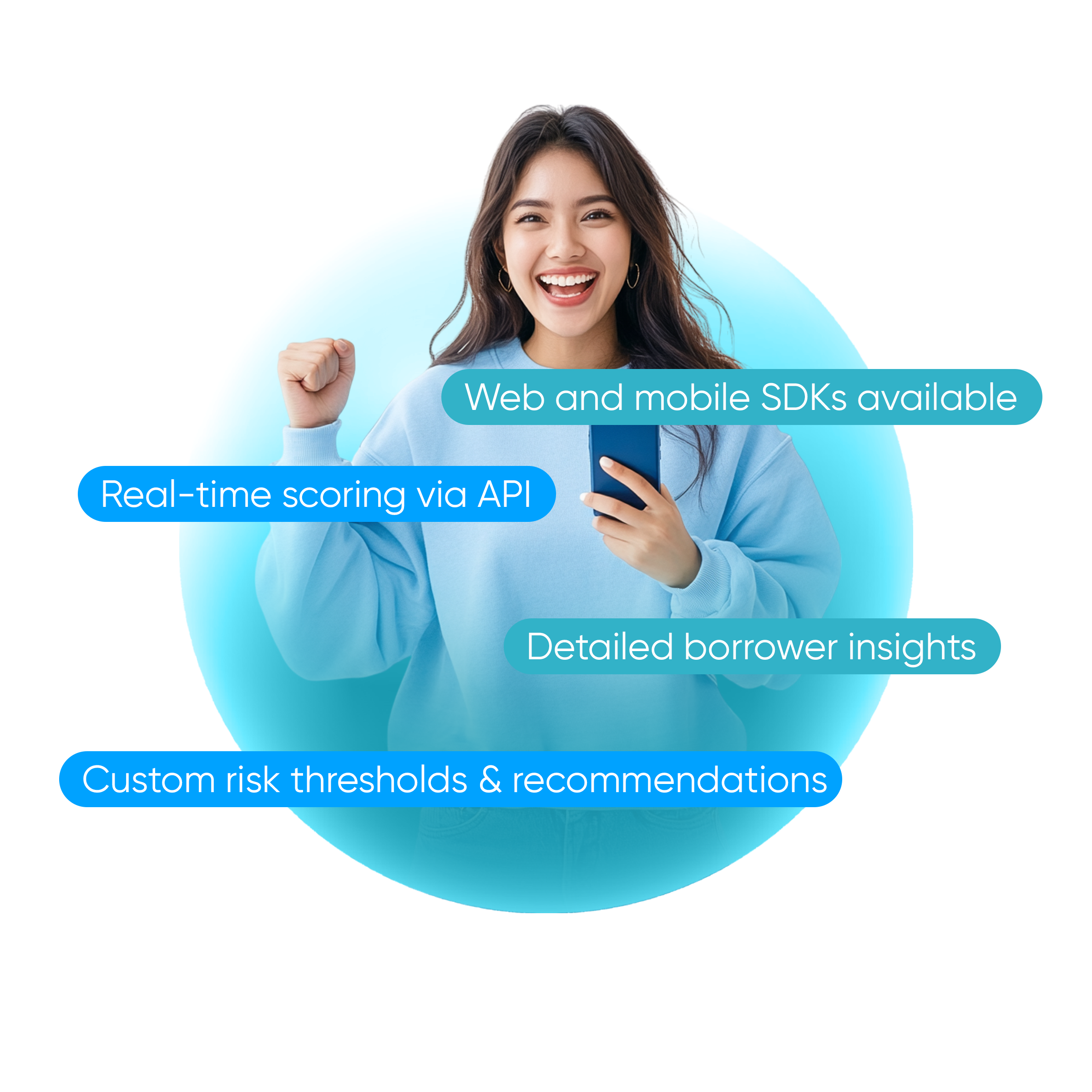Our flagship solution uses scientifically validated psychometric assessments to evaluate traits like reliability, risk tolerance, and self-control—key predictors of repayment behavior. Ideal for markets where credit history is limited or unavailable.